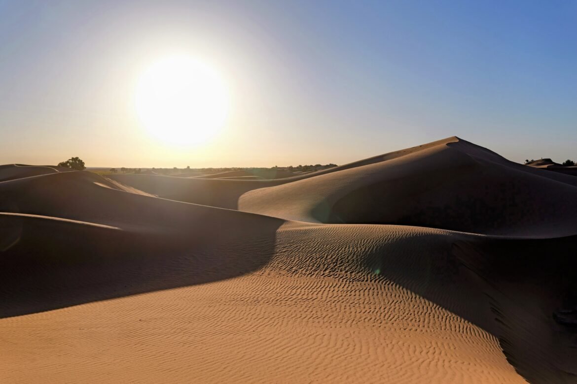 Un 4×4 noir m’attend. Noureddine, en costume traditionnel, œil dur, me lance un « Suis-moi ». Je tremble un peu pour ma Kia Picanto dans le sable. Je le suis. La piste s’enfonce vers l’infini. À un sommet, il me dit : « Sors la caméra. » Le soleil tombe, la pression monte.