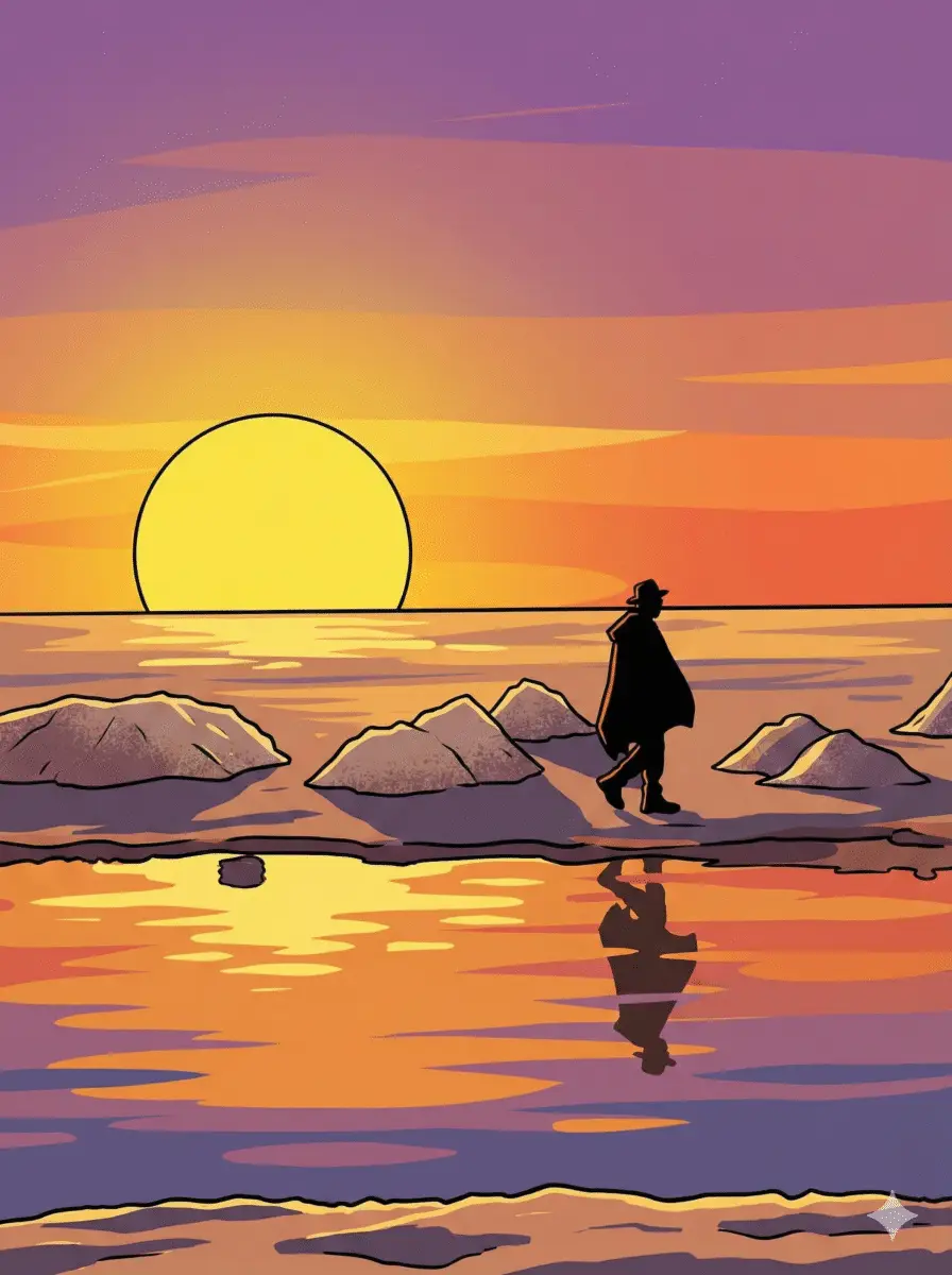 - À ma droite : le Pacifique, infini, doré par le soleil couchant.