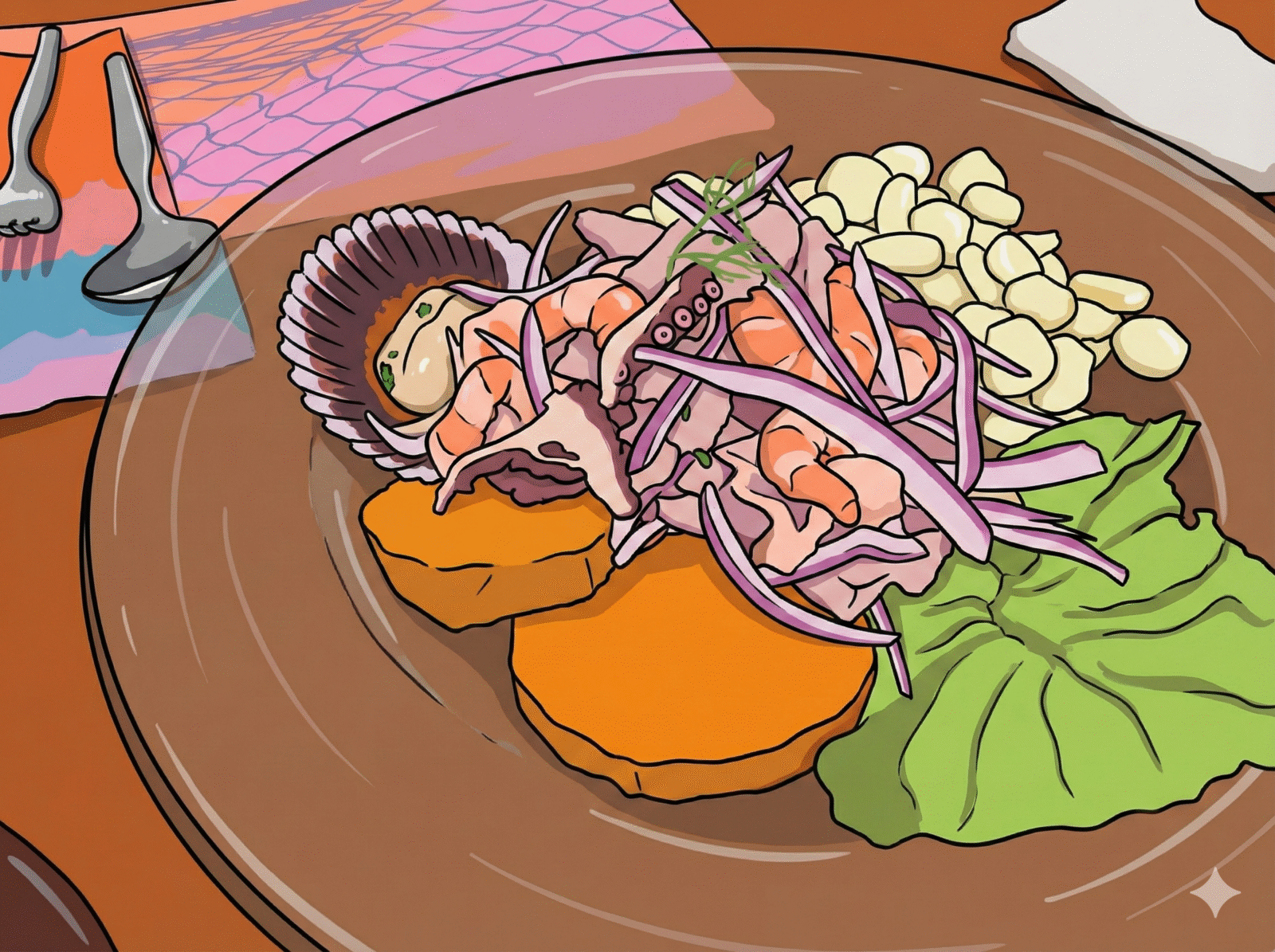 Le citron vert (limón sutil), le piment (ají limo) et le maïs forment une alchimie parfaite. C’est frais, vif, cinglant.
