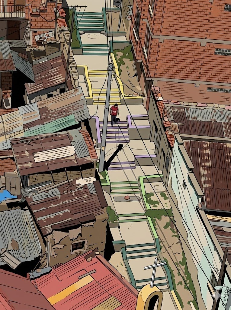 Tout ce qui était fluide dans les Andes devient ici fastidieux, stressant, « parisien ». On sent que Lima a une âme cachée, mais elle nous offre ce matin son visage le plus ingrat : bouchons, klaxons et chaos. Notre chauffeur Uber, dans sa voiture cabossée, tente un coup de poker : le chemin de traverse. Last Ride. Il fonce à travers les quartiers populaires, peut-être des Pueblos Jóvenes. On voit l’envers du décor, les maisons de briques inachevées, la vie dure qui défile par la fenêtre.